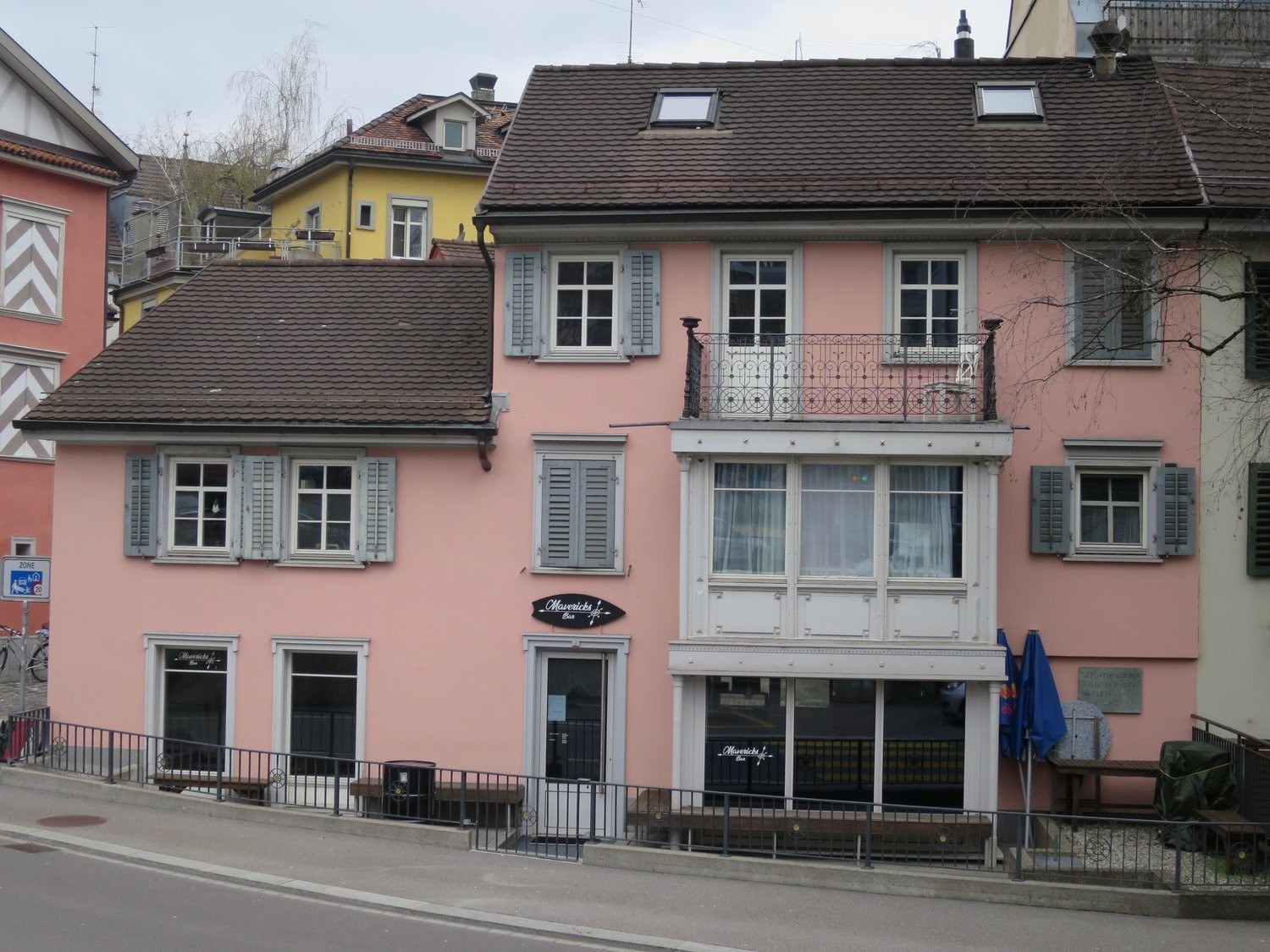 Entdecken Sie diese gemütliche 3.5-Zimmer-Wohnung im 1. Stock eines charakteristischen rosa Gebäudes in der historischen Augustinergasse 19 in St. Gallen.