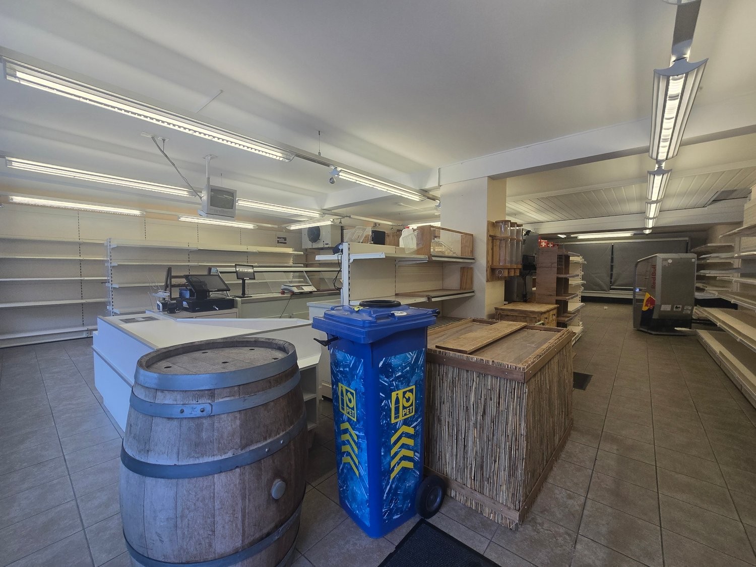 Grosszügiger Verkaufsraum: Mit Regalen, Theke und professioneller Beleuchtung ausgestattet, gefliester Boden für einfache Pflege