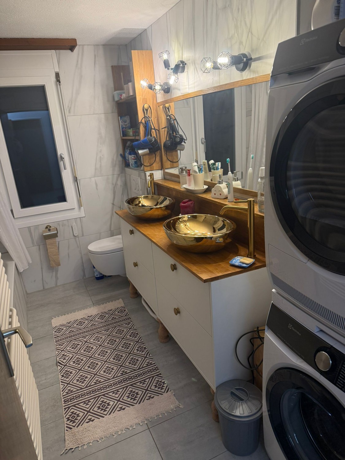 Wir suchen eine/n Mitbewohner/in für unsere Wohnung in einer WG in der Nähe von St. Gallen. Aktuell wohnen wir zu dritt in der Wohnung (Frau, 2 Männer). Zwei von uns sind berufstätig, und ein Student verlässt uns im Dezember und beendet sein Semester. Die Vermieter sind nicht immer anwesend. Wir suchen eine/n ordentliche/n, rücksichtsvolle/n, zuverlässige/n und freundliche/n Mitbewohner/in. Wir sprechen Slowakisch, Deutsch und Englisch. In der Wohnung wird kein Fleisch gelagert oder zubereitet; Vegetarier/innen sind uns zwar lieber, aber das ist keine Bedingung. Wichtig ist nur, dass kein Fleisch in der Wohnung gelagert wird. Die Wohnung verfügt über zwei Badezimmer mit zwei Geberit-WCs, ein gemeinsames Wohnzimmer und eine Küche. Die Waschmaschine und ein Tumbler befinden sich in der Wohnung. Im Keller gibt es die Möglichkeit, die Wäsche zu trocknen. Das Dorf liegt im Grünen, Bushaltestelle und Einkaufsmöglichkeiten sind in 5 Minuten zu Fuss erreichbar.