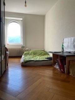 Nous proposons une chambre denviron 15 m² dans une colocation de 3 personnes, située au 5e étage, avec une magnifique vue sur le lac et les montagnes.