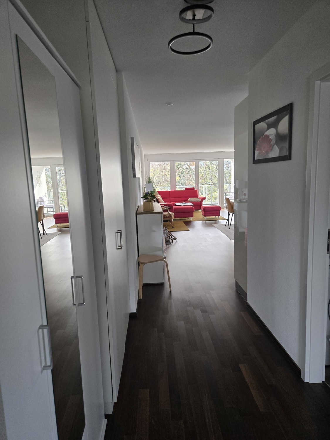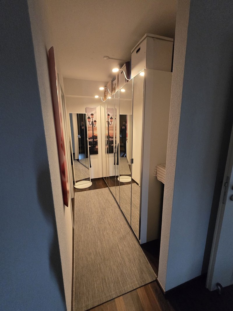 Espace dressing : grande armoire vitrée miroir faite sur mesure par Ikea avec lumineuses à l'intérieur et à l'extérieur, très élégant, si souhaité: CHF 1'500.-.