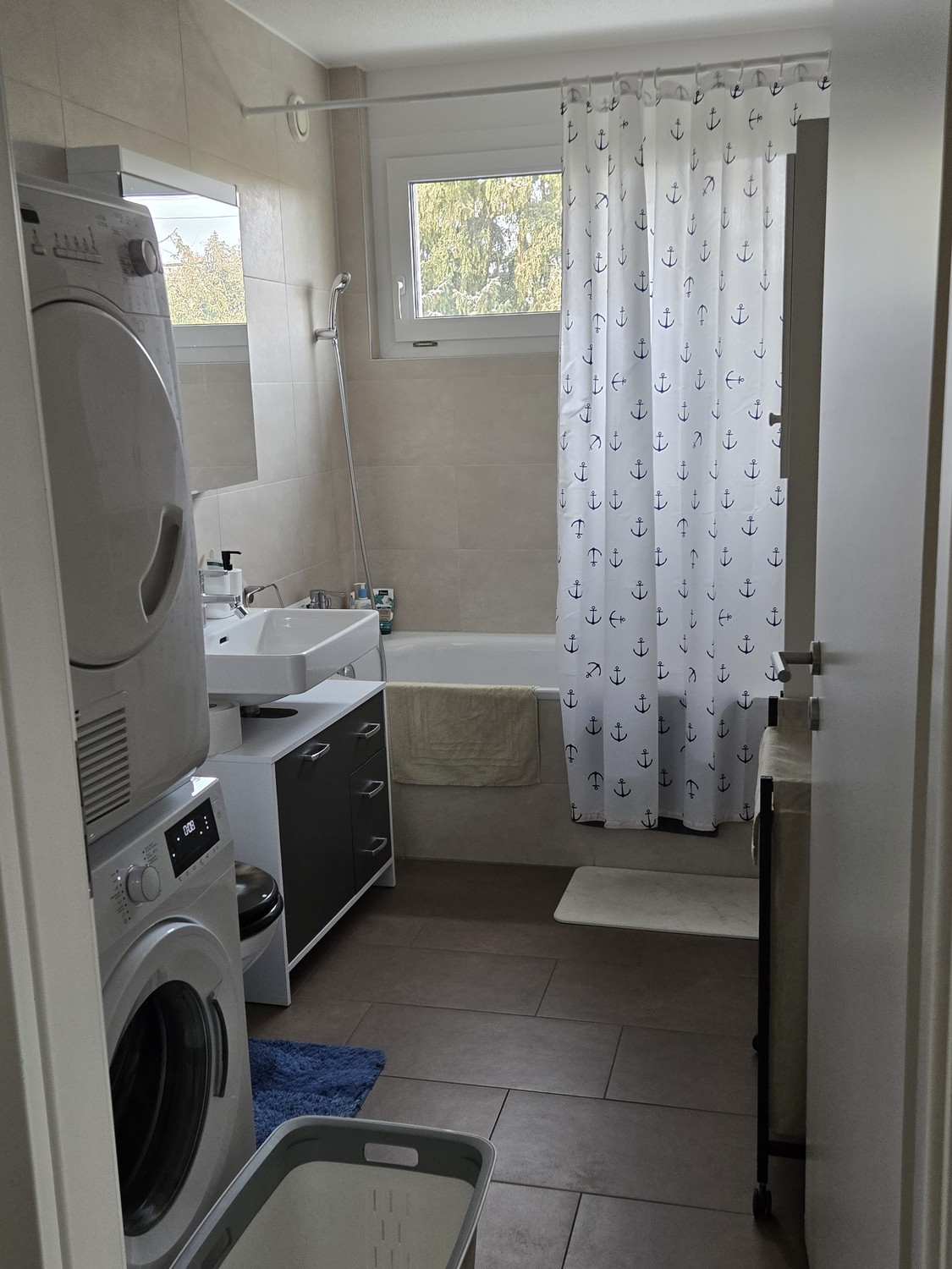 Salle de bain avec colonne machine à laver et machine à sécher (d'origine, rien à payer)