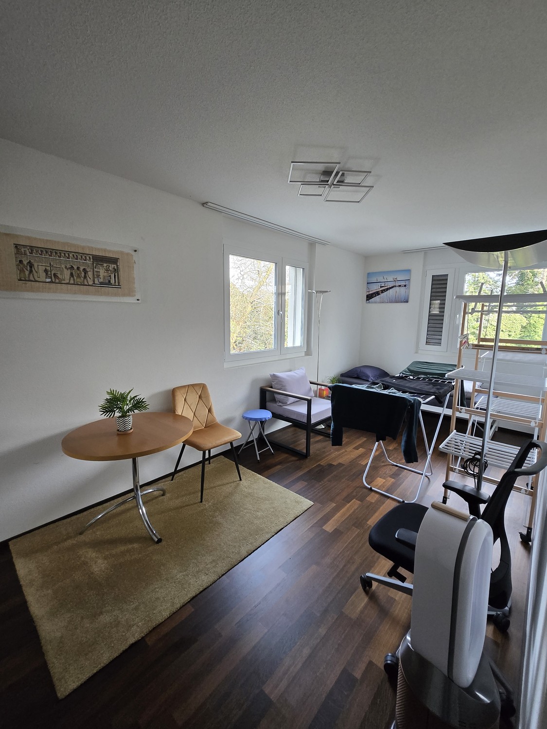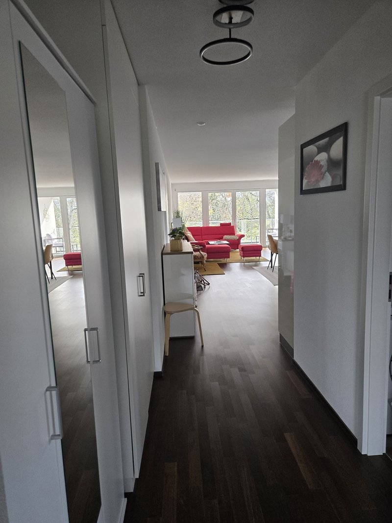 Visite deux personnes max à la fois. Sur site Flatfox, vous pouvez vous inscrire à une des visites prédéterminées ou m'écrire un message via formulaire.