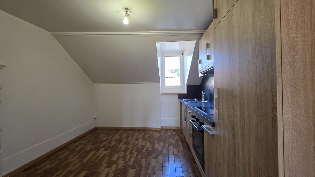Cuisine agencée avec emplacement pour lave-linge, hall avec armoires, salle de bains/WC, séjour et 2 chambres avec parquet, chambre-haute. L'immeuble est équipé du chauffage central et se situe à deux pas du centre commercial des Entilles.