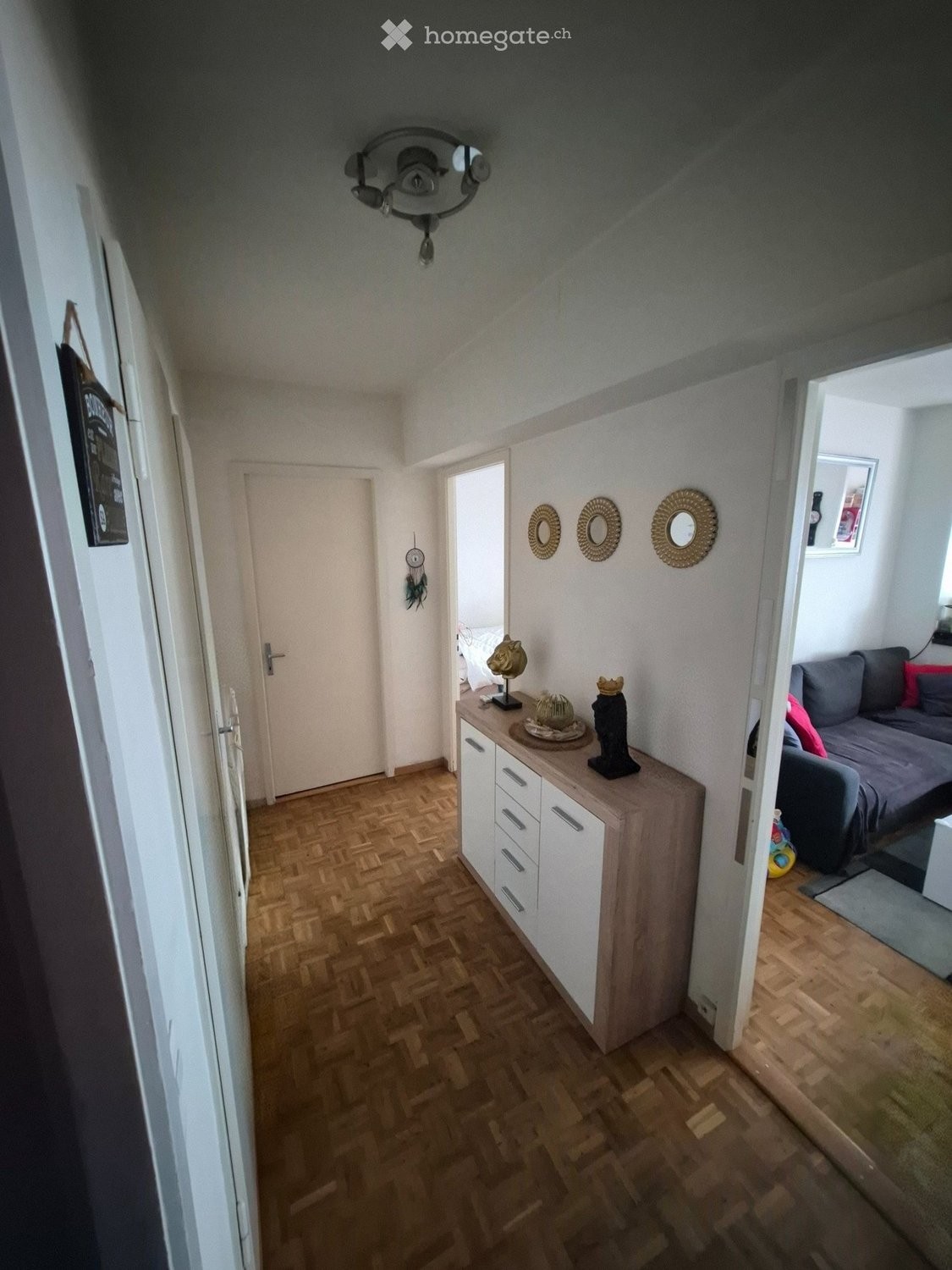 Ce compose : une cuisine ouverte sur salon Une petite chambre ( sur salon) une grande chambre parentale un WC un réduit une salle de bain ( baignoire)