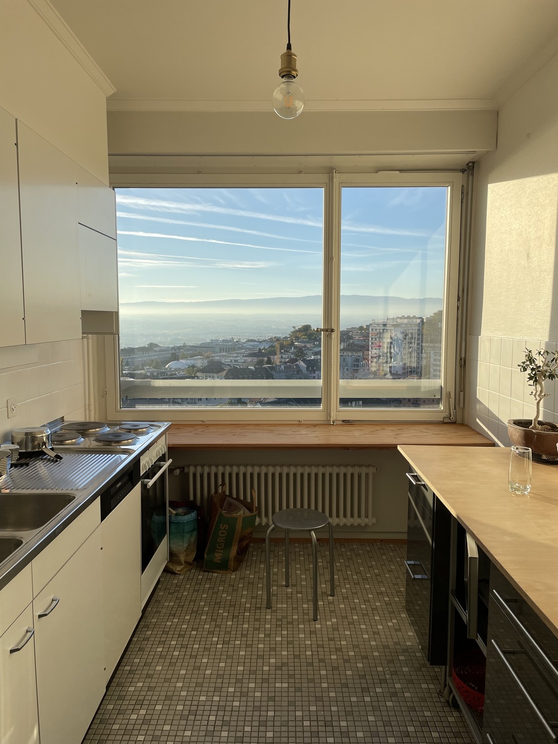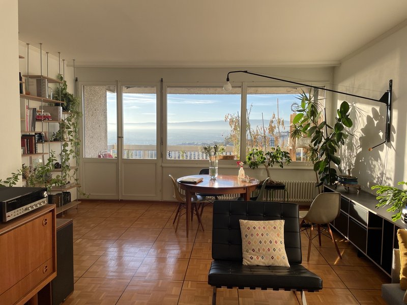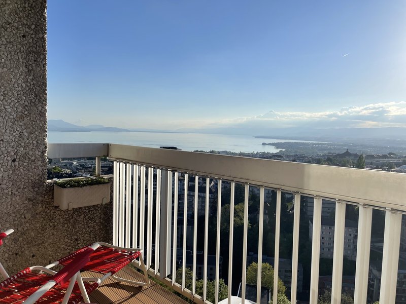 L’appartement est situé au calme, à proximité de la nature et bénéficie d’une vue imprenable sur l’arc lémanique. Il est spacieux, lumineux, meublé et possède un superbe balcon. La chambre est de taille modeste (11m2) mais bénéficie d’un dressing séparé. Son loyer est de 1’050.-