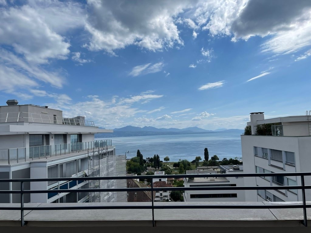 Magnifique logement comprenant un hall d'entrée, une cuisine entièrement agencée avec colonne de lavage, 3 chambres à coucher dont une suite parentale avec salle de bains/WC attenante et un dressing, une salle de douches et un WC séparé. Terrasse 360 degrés avec vue sur le lac.
