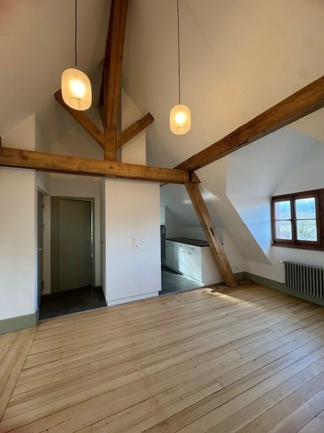 Dans le charmant village d'Ependes, à 10 min d'Yverdon et à 30 min de Lausanne, Magnifique logement entièrement rénové de 2.5 pièces, comprenant :