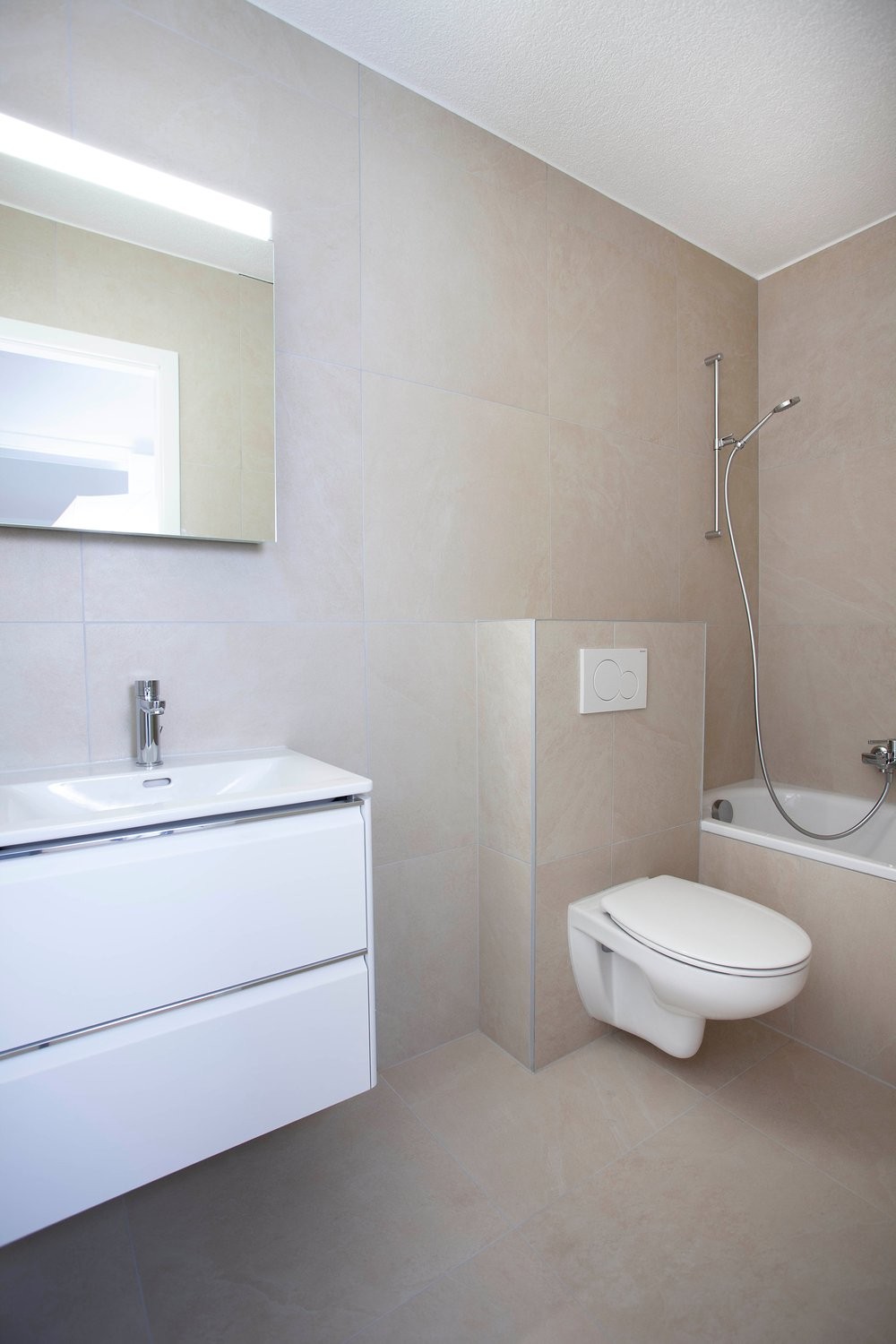 Ce logement dispose d'une cuisine agencée et habitable, de trois chambres, d'une salle-de-bains avec baignoire, d'un WC séparé ainsi qu'une machine lavante/séchante.