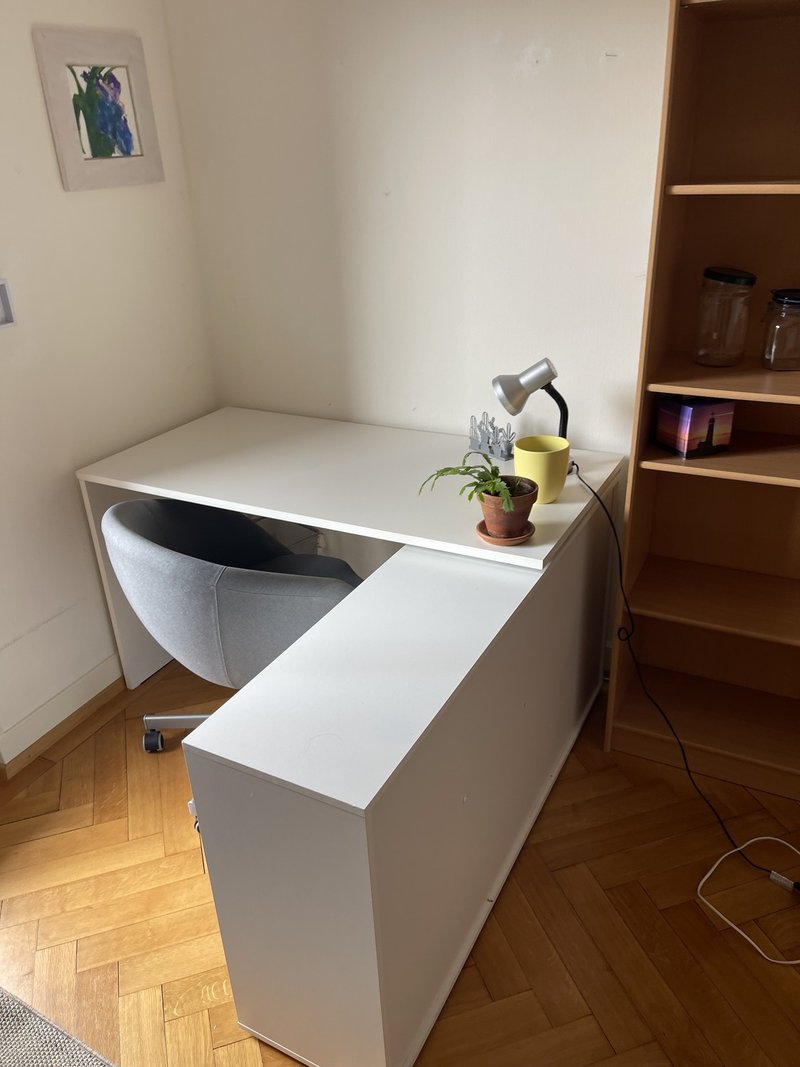 • Bureau polyvalent : Espace télétravail avec chaise ergo, bureau spacieux et étagères.