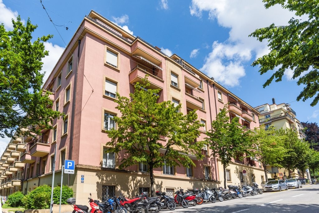Il n'y a pas de place de parc disponible dans l'immeuble, mais le parking de Mon-Repos se trouve à environ 300m.