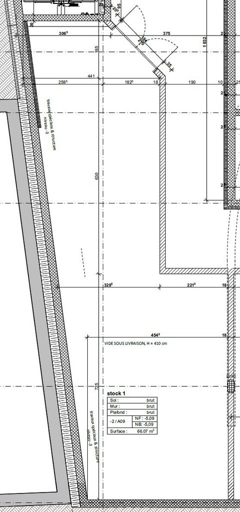 Dans un immeuble situé au centre-ville, le local dépôt au sous-sol se compose d'une surface de 66 m2.