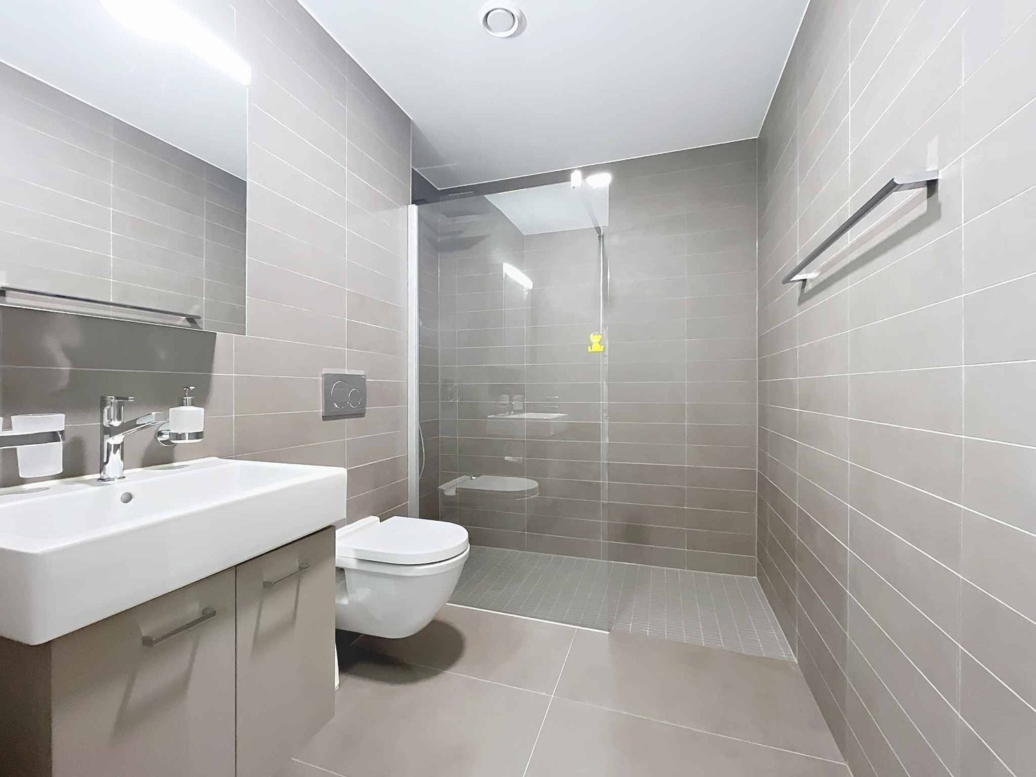- Une salle de douche avec WC et colonne de lavage