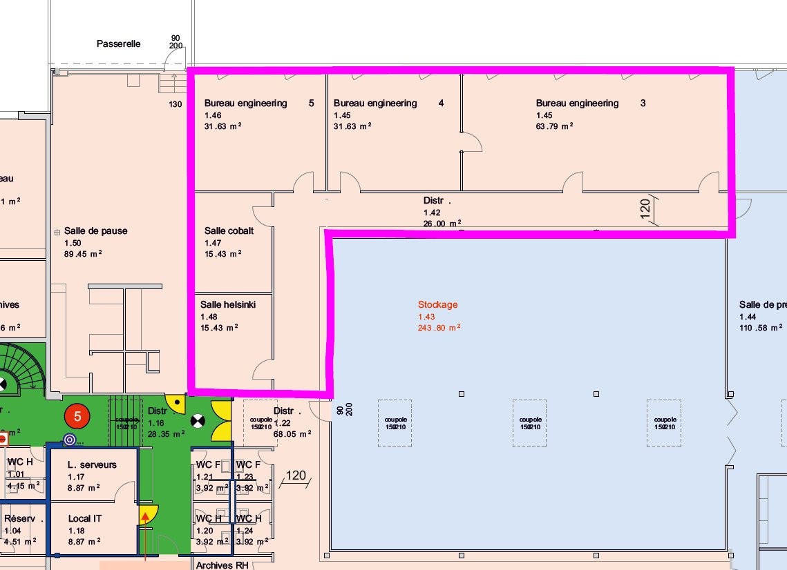 Aménagement Affectation : Bureau / atelier Surface : 218 m² Étage : 1er étage