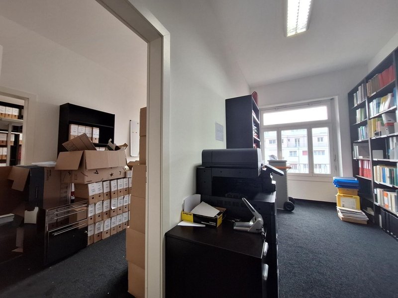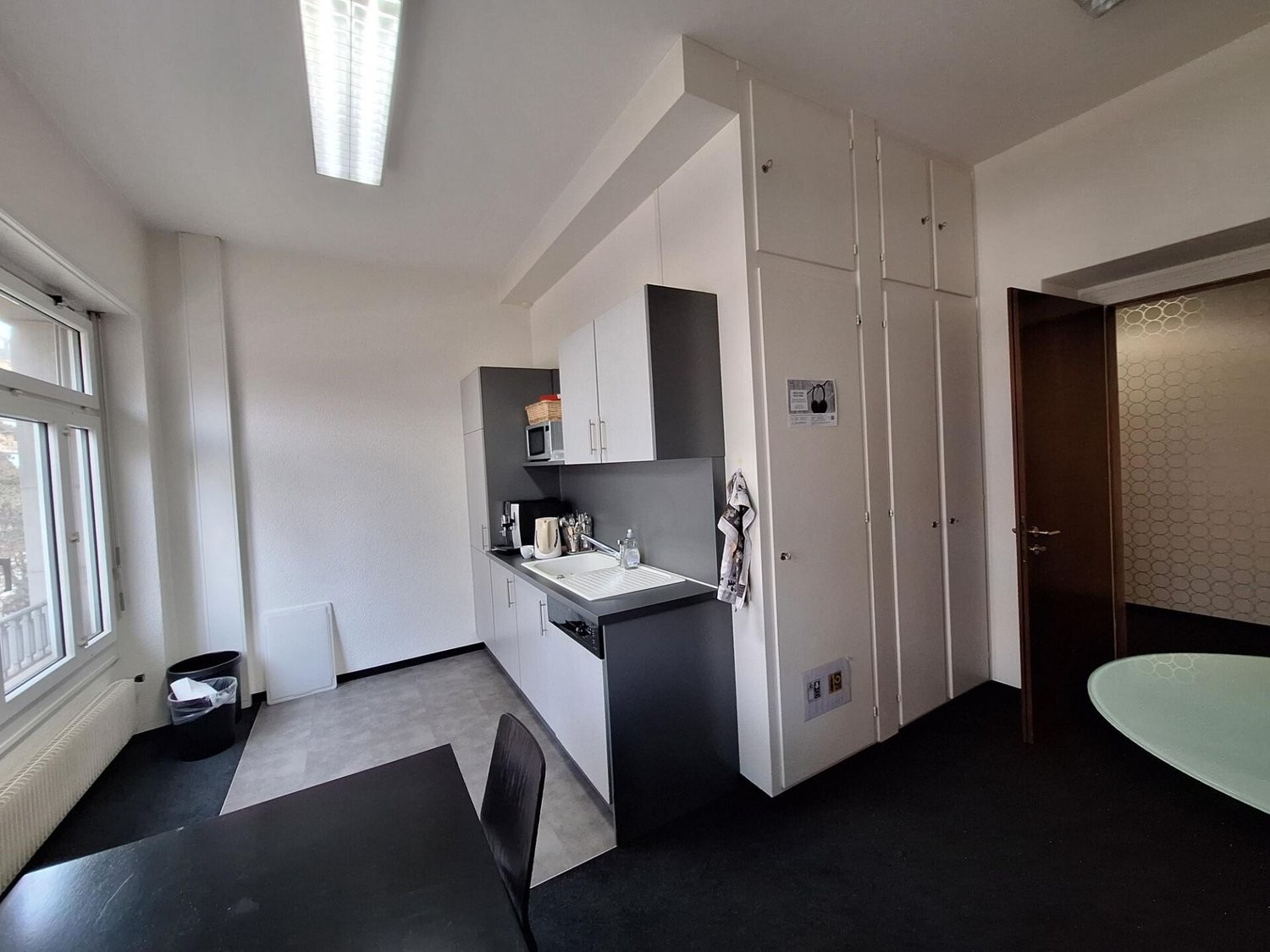 Cette surface occupe tout le côté Ouest du 3ème étage et se compose de 5 bureaux fermés, d'un grand bureau composé de 3 pièces reliées entre elles par une porte et d'une cafétéria, le tout desservi par un élégant couloir de distribution. Des sanitaires sont également présents dans les locaux.