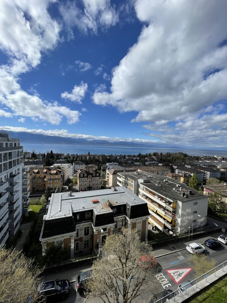 Appartement lumineux de 6 pces situé au 3ème étage d'un immeuble bénéficiant d'une vue exceptionnelle sur l'arc lémanique, disponible de suite et en l'état.