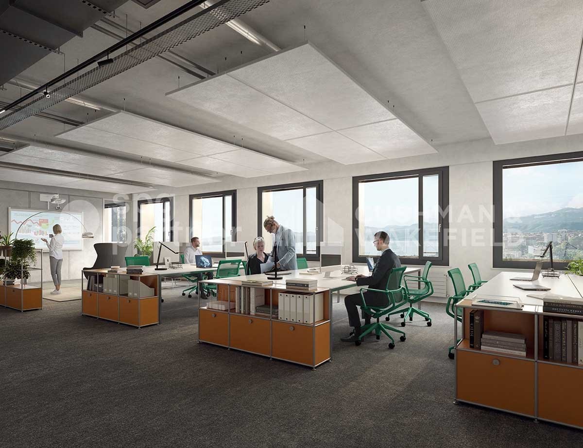 • Bâtiment A : Surfaces de 166 à 1'400 m², loyers aménagés dès CHF 360.-/m²/an.