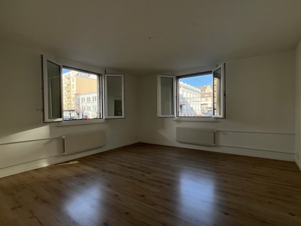 A louer pour de suite ou à convenir, un spacieux 3.5pcs au 1er étage d'un grand immeuble qui est situé au centre de la Chaux-de-Fonds et proche de la gare.