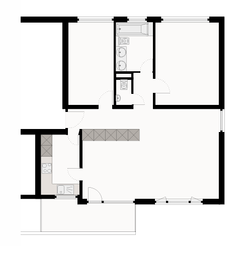 The apartment also has a second bathroom with a sink and toilet.