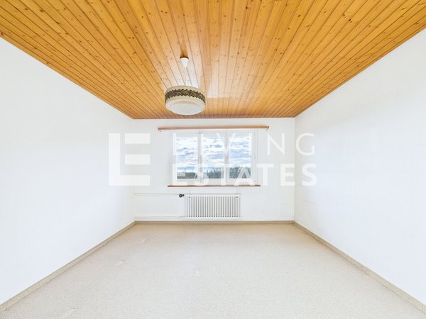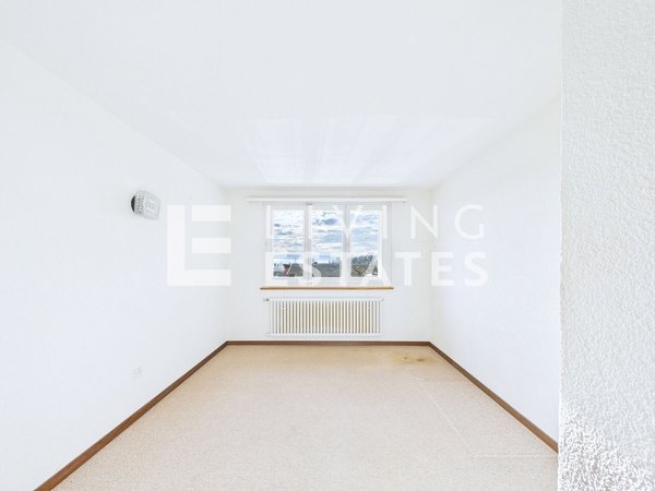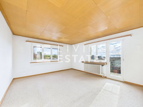 Im Obergeschoss liegt die praktische 2.5-Zimmer-Wohnung, die sich ideal für eine Vermietung, ein Mehrgenerationenkonzept oder als separates Arbeitsdomizil eignet. Beide Einheiten bieten eine solide Basis für Renovationen und Anpassungen an heutige Wohnbedürfnisse. Alternativ eignet sich die Liegenschaft auch für die Realisierung eines Neubaus und bietet damit zusätzliche Entwicklungsperspektiven.