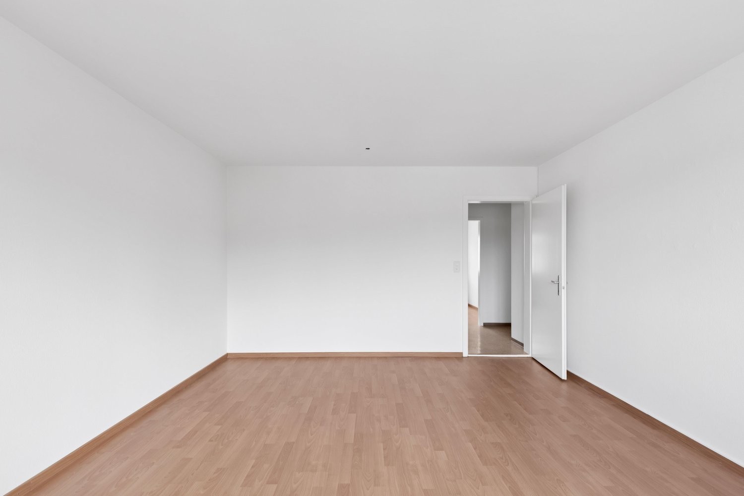 Helles und einladendes Wohnzimmer mit Laminatboden.