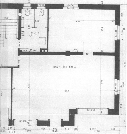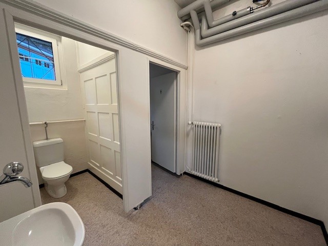 Zu den Räumlichkeiten gehören eine WC-Anlage (zur Mitbenutzung) sowie eine kleine Küchenzeile mit Waschbecken.