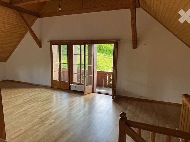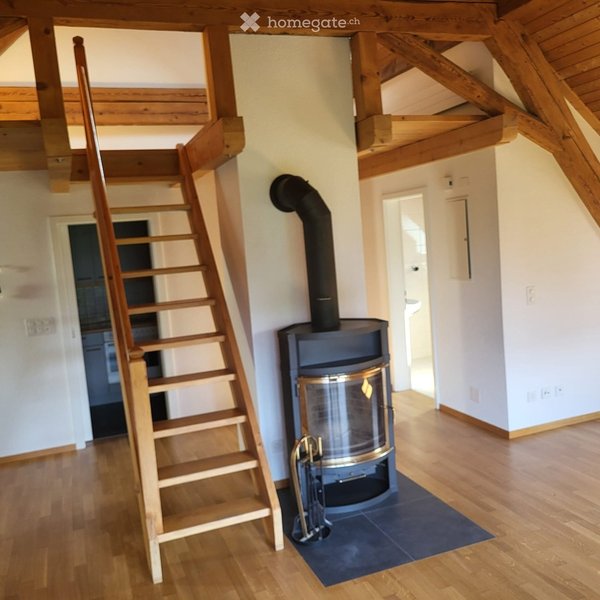 Neu renovierte 3,5-Zimmer-Dachwohnung mit Galerie, Schwedenofen und Balkon in idyllischer Lage in Biglen zu vermieten.