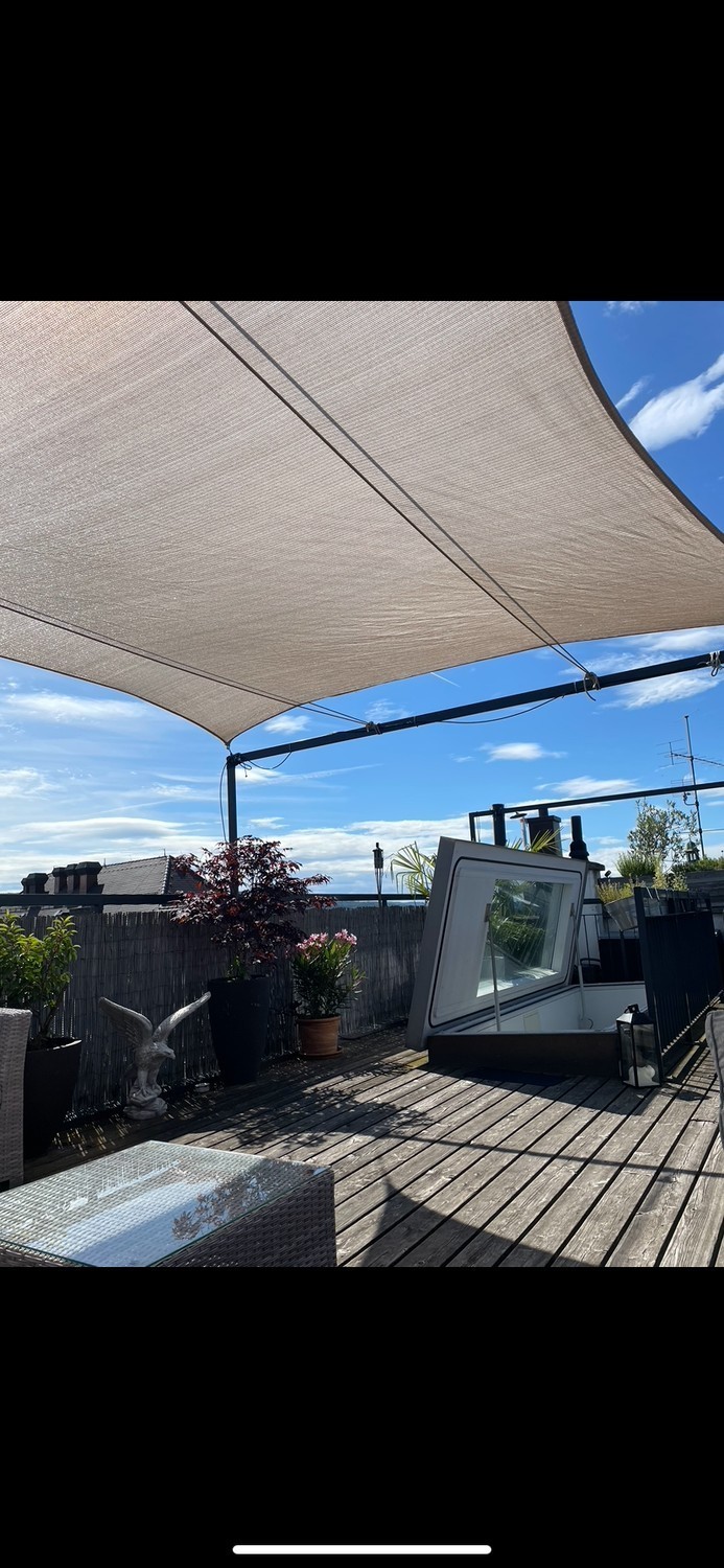🌇 44m² rooftop terrace with sunset views, fully equipped with a large lounging area, barbecue, and outdoor shower