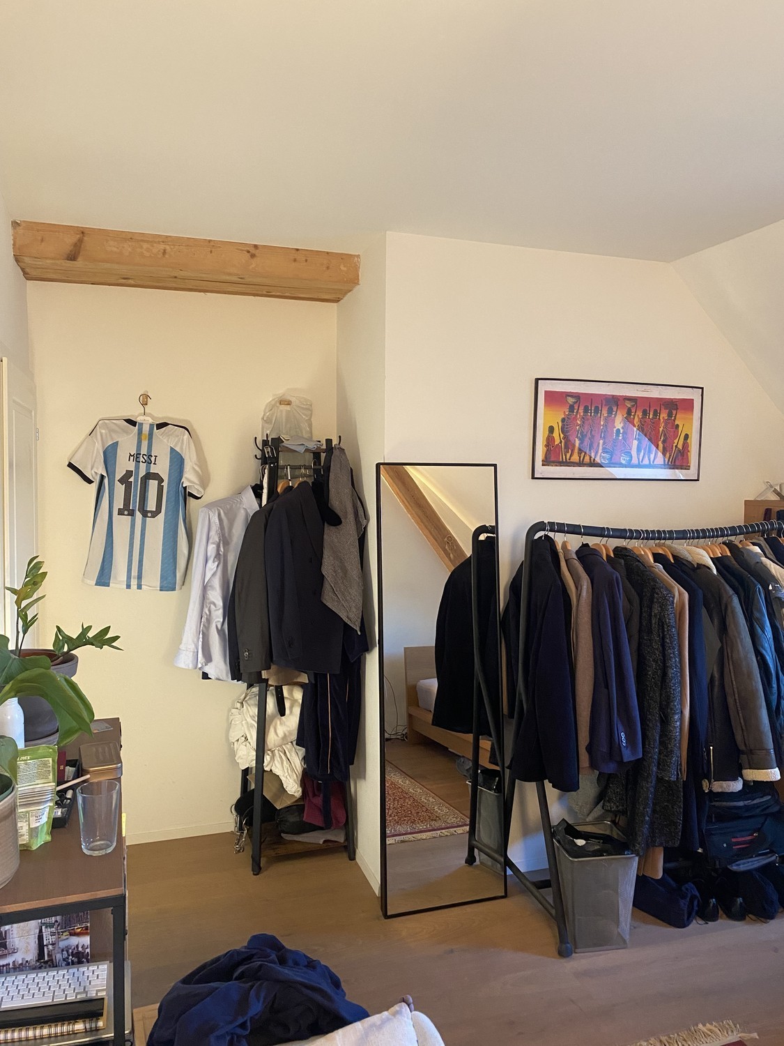🛏️ The available 18m² bedroom is fully furnished with a queen-size bed, clothes hanger, cupboards, full-length mirror, and desk. If you prefer to bring your own furniture, just let us know :)