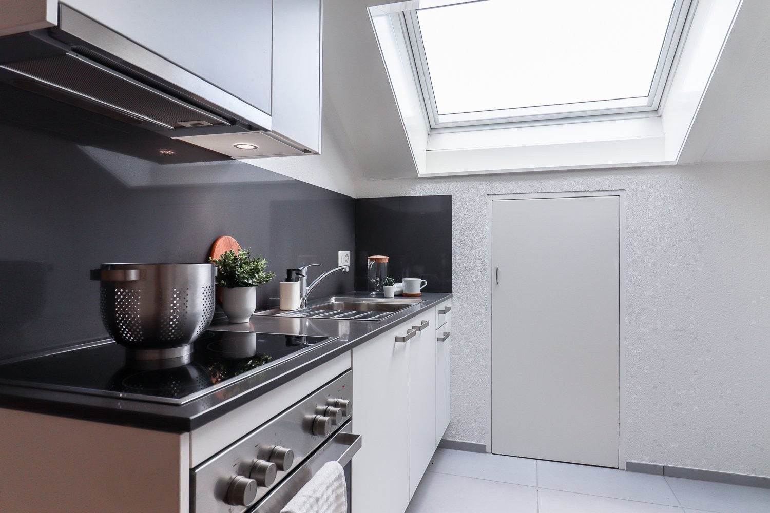 - Küche mit Geschirrspüler und Glaskeramikkochfeld