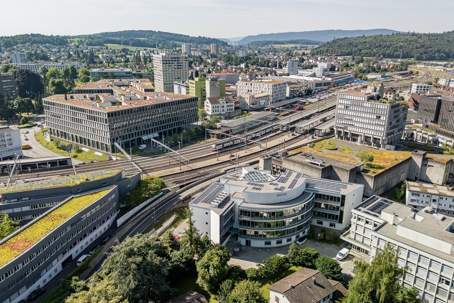 Der Bahnhof Brugg ist in nur zwei Gehminuten erreichbar. Kostenpflichtige Parkplätze stehen direkt im Gebäude zur Verfügung. Im angrenzenden Neumarkt Brugg finden Sie ein vielfältiges Angebot an Einkaufs- und Verpflegungsmöglichkeiten. Der Campus der FHNW (Fachhochschule Nordwestschweiz) befindet sich ebenfalls in unmittelbarer Nähe.