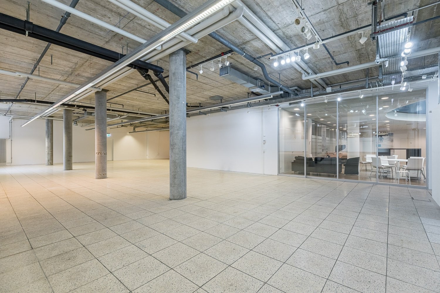Die Fläche wird im erweiterten Grundausbau vermietet. Dieser umfasst unter anderem: