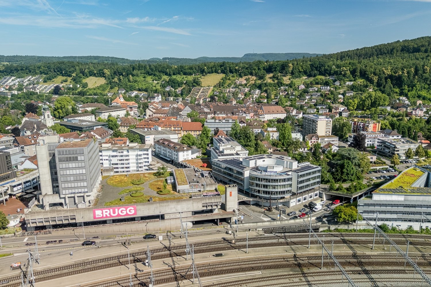 Den Bahnhof Brugg erreichen Sie in zwei Minuten zu Fuss. Kostenpflichtige Parkplätze befinden sich direkt im Gebäude. Im angrenzenden Neumarkt Brugg finden Sie beste Einkaufs- und Verpflegungsmöglichkeiten.