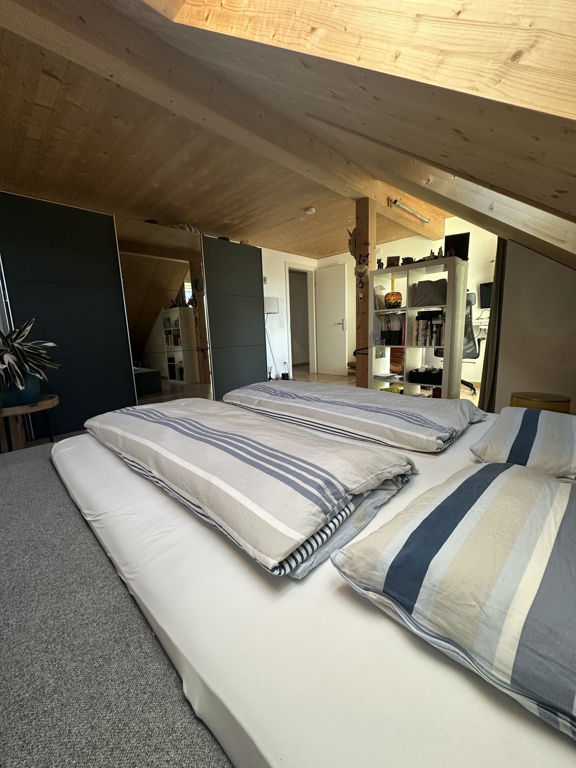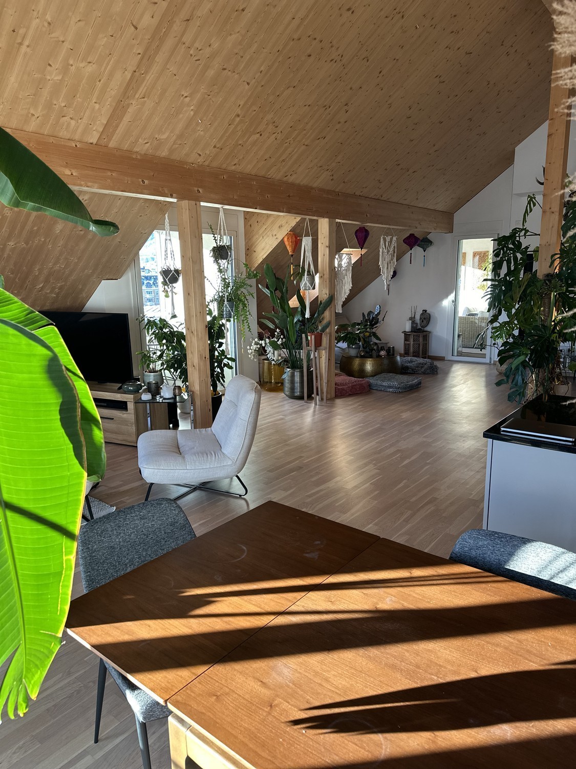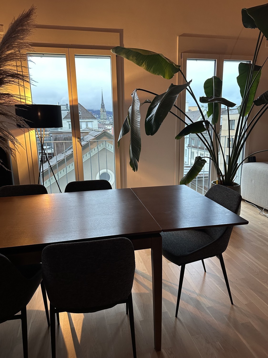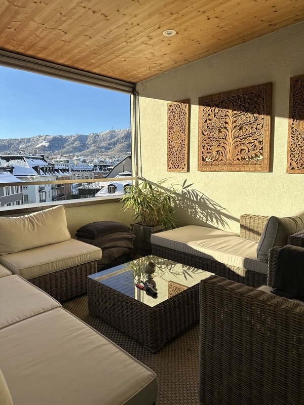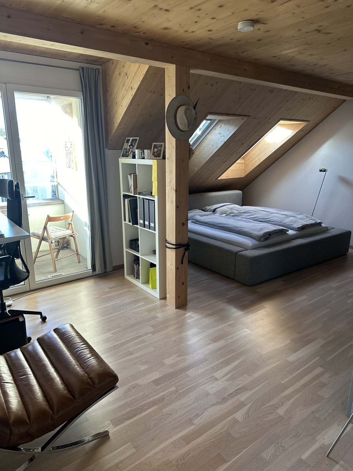 The room has 25m2 and a private Loggia, in a 180m2 apartment with high ceilings and a lot of space to breathe located in Zurich's heart. There are two bathrooms, a shared loggia with a view of the Uetliberg and an elevator leading directly into the flat. Included in the price are all utilities and cleaning once a week. The room can be with or without furniture.