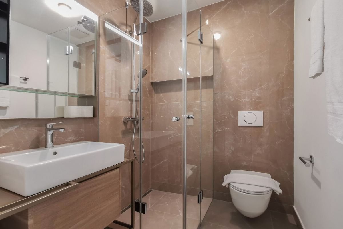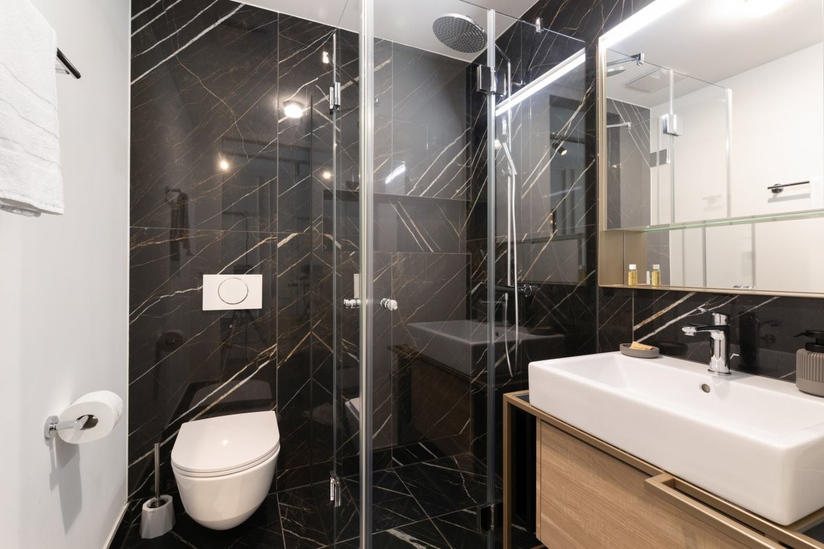 + Marmorplatten in den Duschen