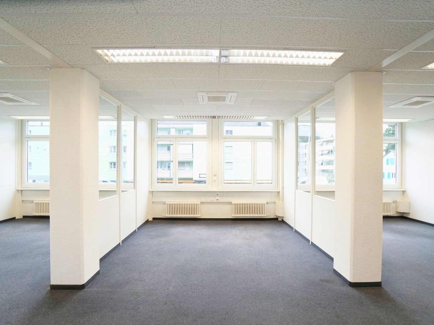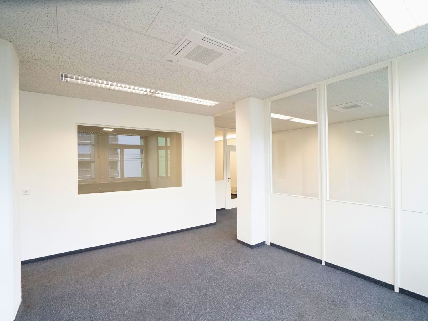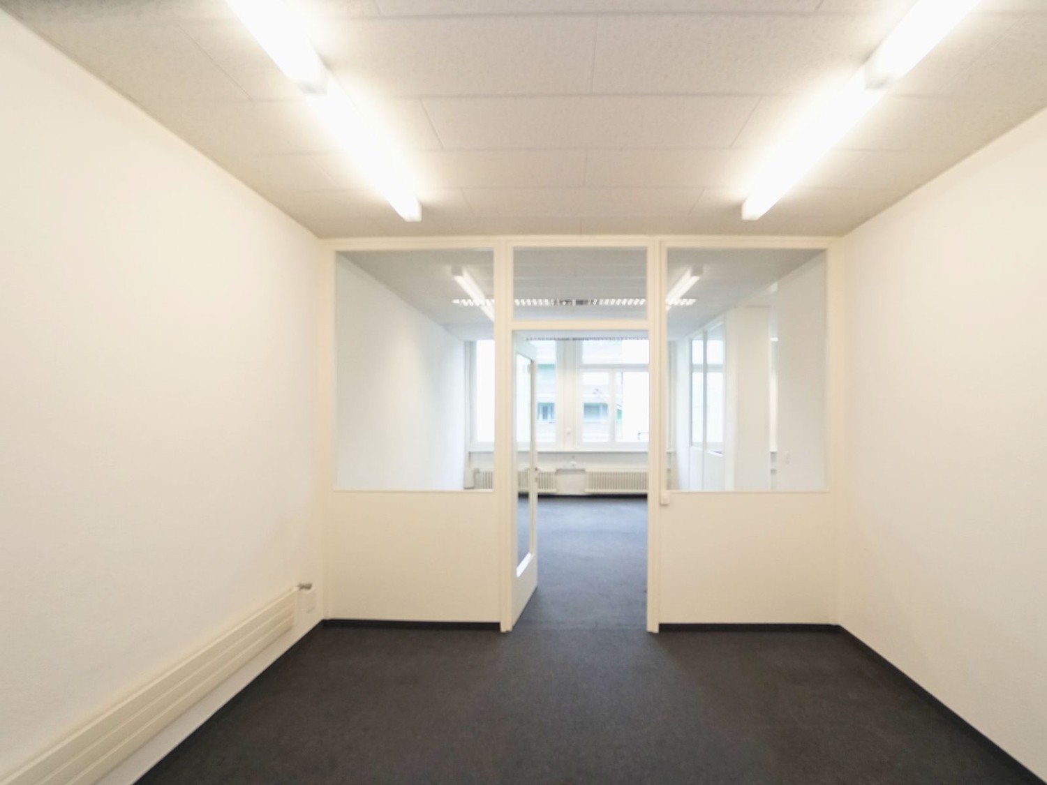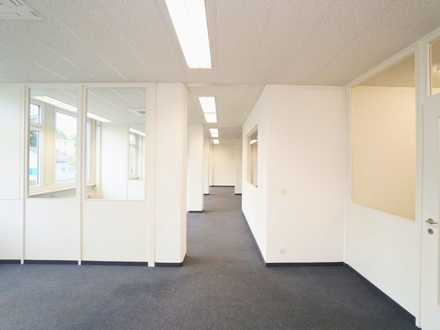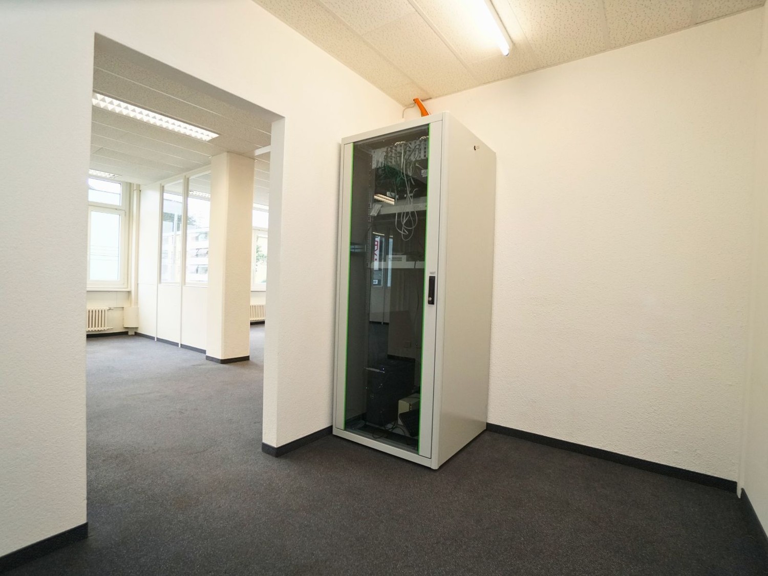 Die vorhandene Raumstruktur schafft klare Arbeitszonen und ermöglicht effiziente Abläufe. Gleichzeitig sind individuelle Anpassungen an der Raumeinteilung problemlos realisierbar. Ob offene Arbeitslandschaft, zusätzliche Besprechungsräume oder weitere Einzelbüros – die Fläche lässt sich auf Ihre betrieblichen Bedürfnisse abstimmen.