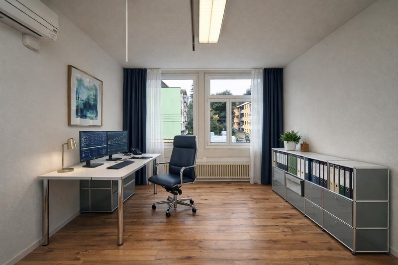Im 1. Obergeschoss dieses gepflegten Geschäftshauses erwartet Sie eine vielseitig nutzbare Bürofläche mit rund 290 m², die durch ihre klare Struktur, Grosszügigkeit und Anpassungsfähigkeit überzeugt. Die Räumlichkeiten eignen sich ideal für Dienstleistungsunternehmen, Beratungsfirmen, Versicherungen oder Verwaltungen, die Wert auf eine professionelle Arbeitsumgebung legen.