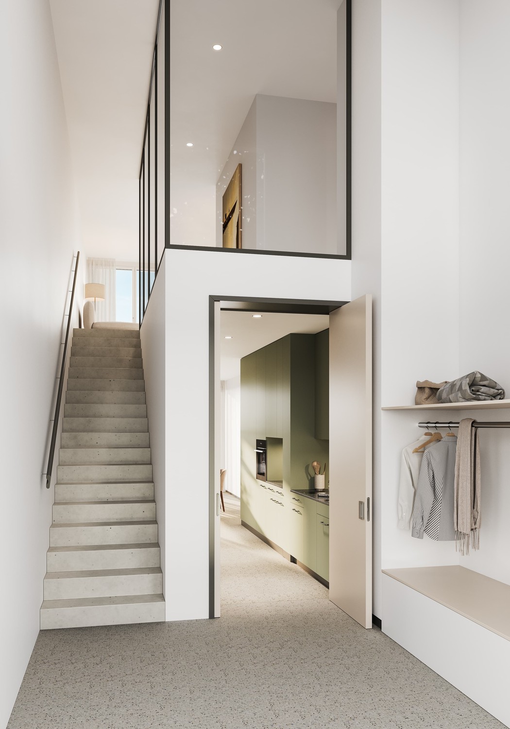 Besonders praktisch ist der separate Hauswirtschaftsraum, der zusätzlichen Komfort und Ordnung im Alltag ermöglicht. Die durchdachte Gestaltung verbindet Funktionalität mit modernem Lifestyle und macht die Loftwohnungen zum idealen Zuhause für alle, die grosszügiges, urbanes Wohnen schätzen.
