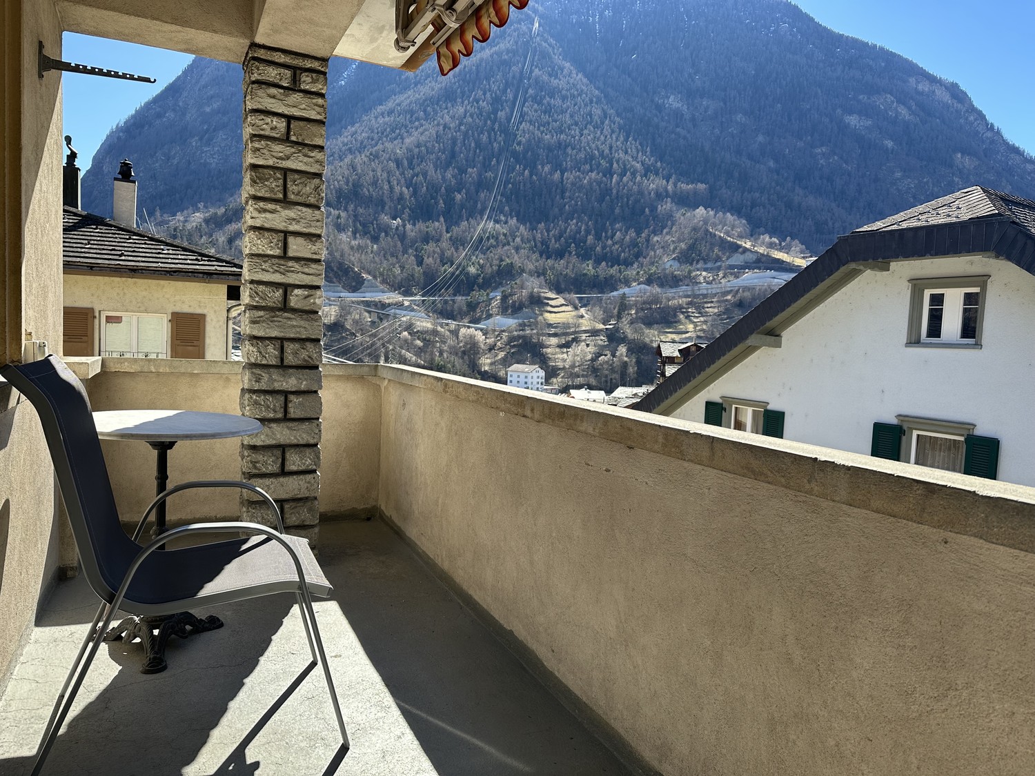 In zentraler Lage: 100 m. vom Bahnhof MGB, Postautohaltestelle und 50 m. vom Migros, Ärztezentrum Stalden, Post, Bank, Tierarzt usw.