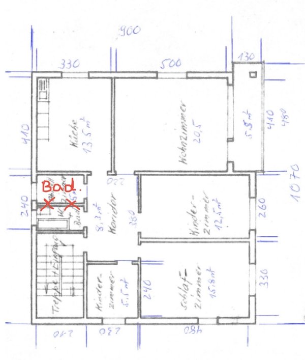 Grosse 4.5 Zimmer Wohnung in Stalden, 110 qm. Obergeschoss, geräumig, hell, hohe Decke, Balkon und Keller.