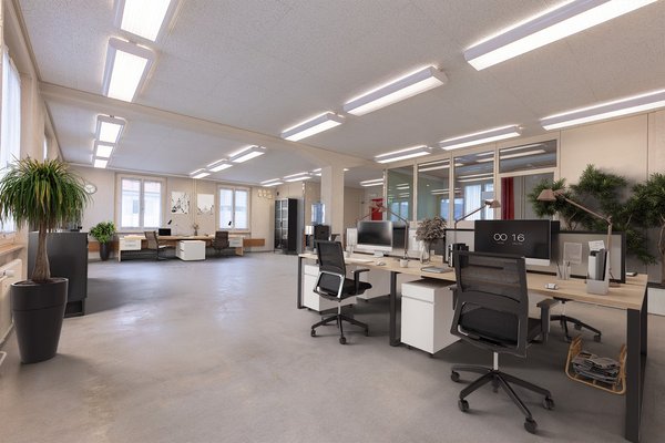 An zentraler Lage ist die grosszügige Fläche von 240 m2 im EG und 1. OG nach Vereinbarung zur Vermietung frei.