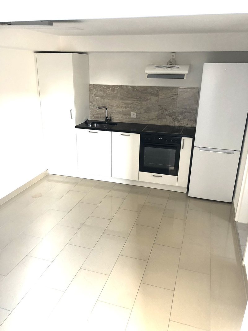Das Studio besteht aus zwei Räumen. Im vorderen Teil gibt es eine Küche mit Backofen, Abwaschmaschine und Kühlschrank.