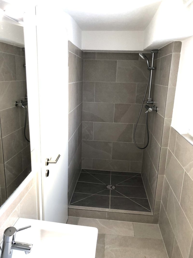 Es gibt ein separates WC mit Lavabo und Duschkabine.