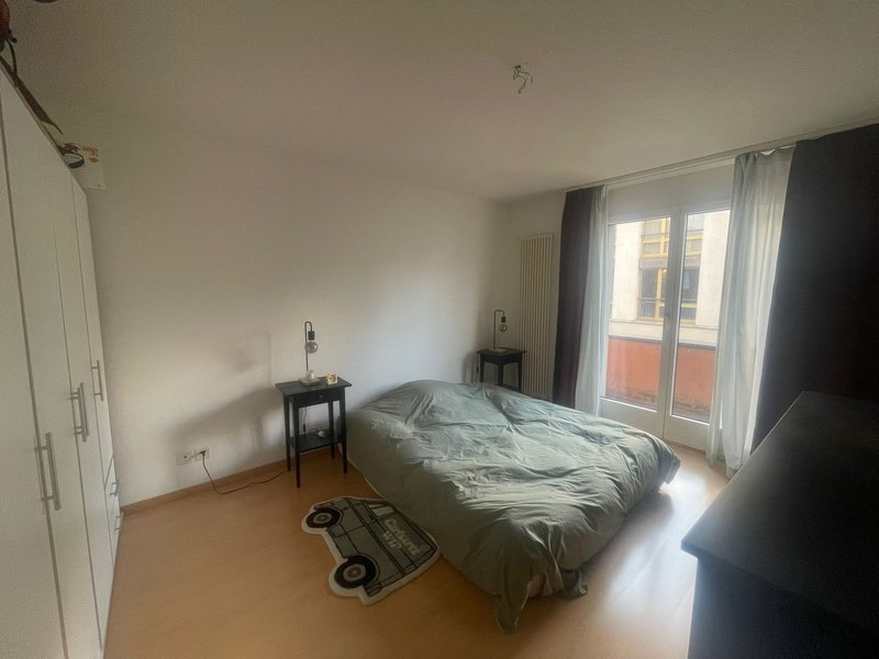 Das Zimmer ist ca. 18 m2 gross und verfügt über einen kleinen, direkt zugänglichen Balkon. Küche, Bad sowie Wohn- & Esszimmer teilen wir :)