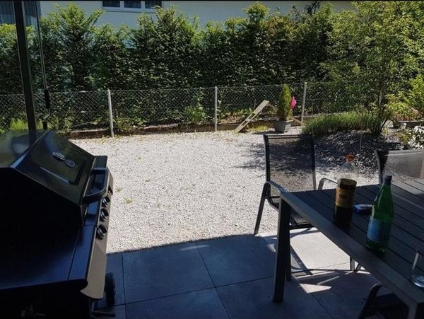 Terrasse, welche von einem Gartenumschwung von 50 m2 umgeben ist.