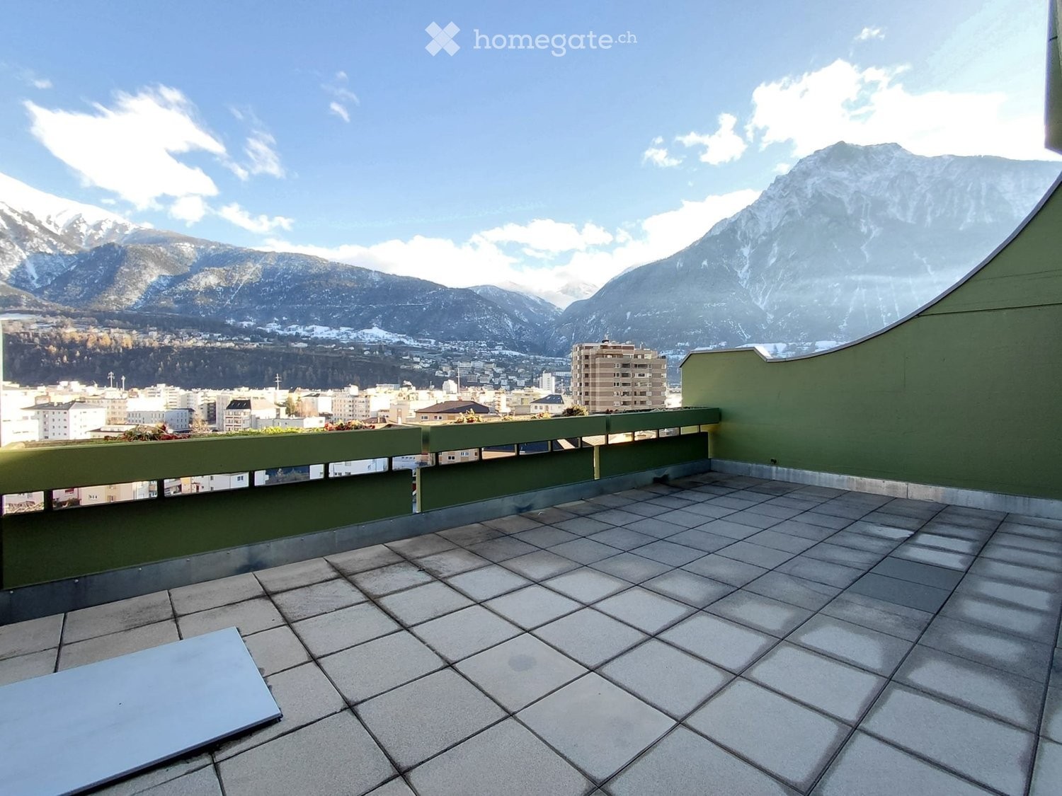 Wir vermieten per 01. Februar 2026 eine moderne 6-Zimmer-Duplexwohnung mit 160m2 im 8. Stock des Hauses Solaris an der Bahnhofstrasse 19 in Naters. Die Wohnung überzeugt durch viel Licht, grosszügige Terrassen, zentraler Lage und eine wunderschöne Aussicht über Naters.