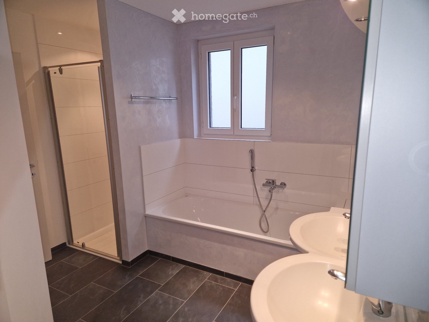 - Bad mit Dusche, Badewanne und Doppellavabo