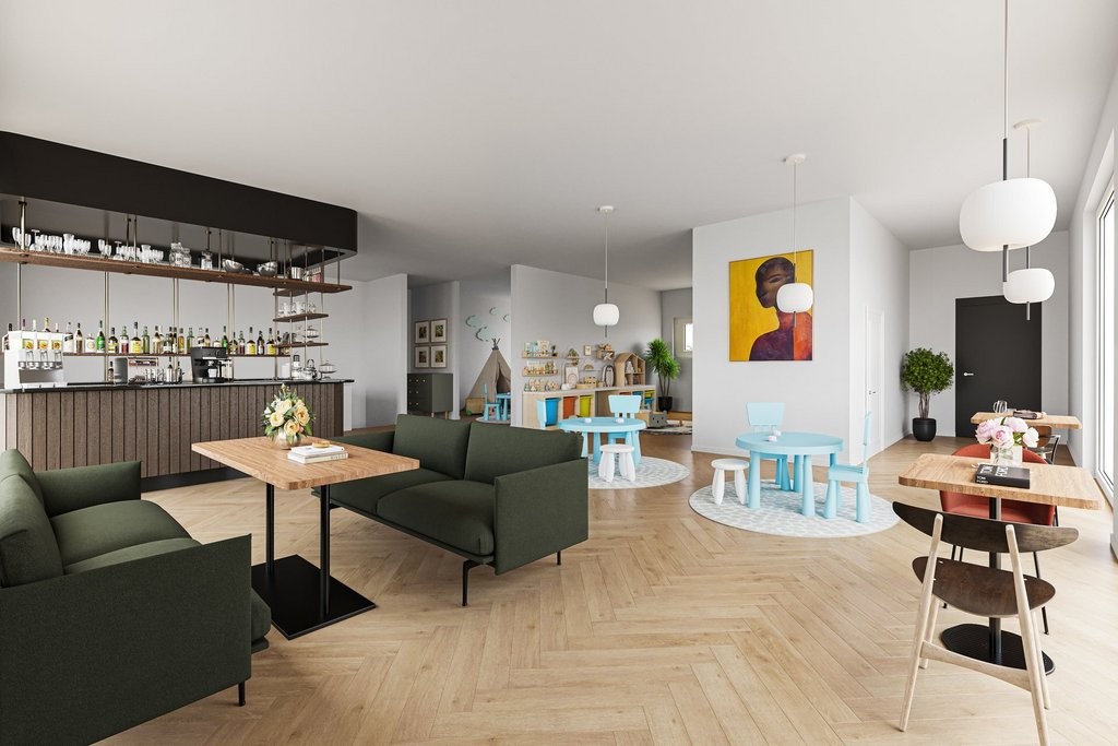 Die lichtdurchfluteten Räume lassen sich individuell anpassen und ermöglichen Ihnen ein durchdachtes Raumkonzept ganz nach Ihren Bedürfnissen. Visualisierungen geben Ihnen bereits heute einen inspirierenden Einblick, wie Ihr zukünftiger Standort aussehen könnte - sei es mit Kaffeeduft, kreativer Teamarbeit oder fröhlichem Kinderlachen.