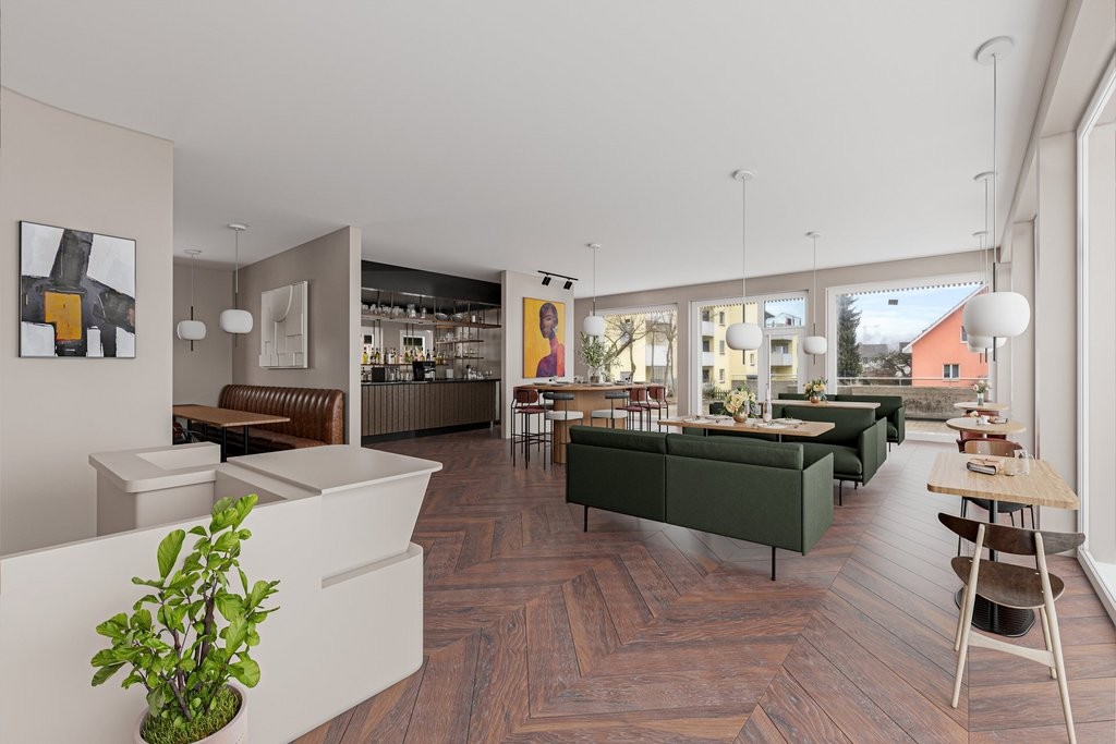 - Geeignet für verschiedene Konzepte (z.B. Café mit gemütlichem Gastraum und Aussenbereich / Bürofläche mit offenem Layout oder Einzelbüros / Kinderkrippe/-hort mit sicherem Zugang und kinderfreundlicher Gestaltung)