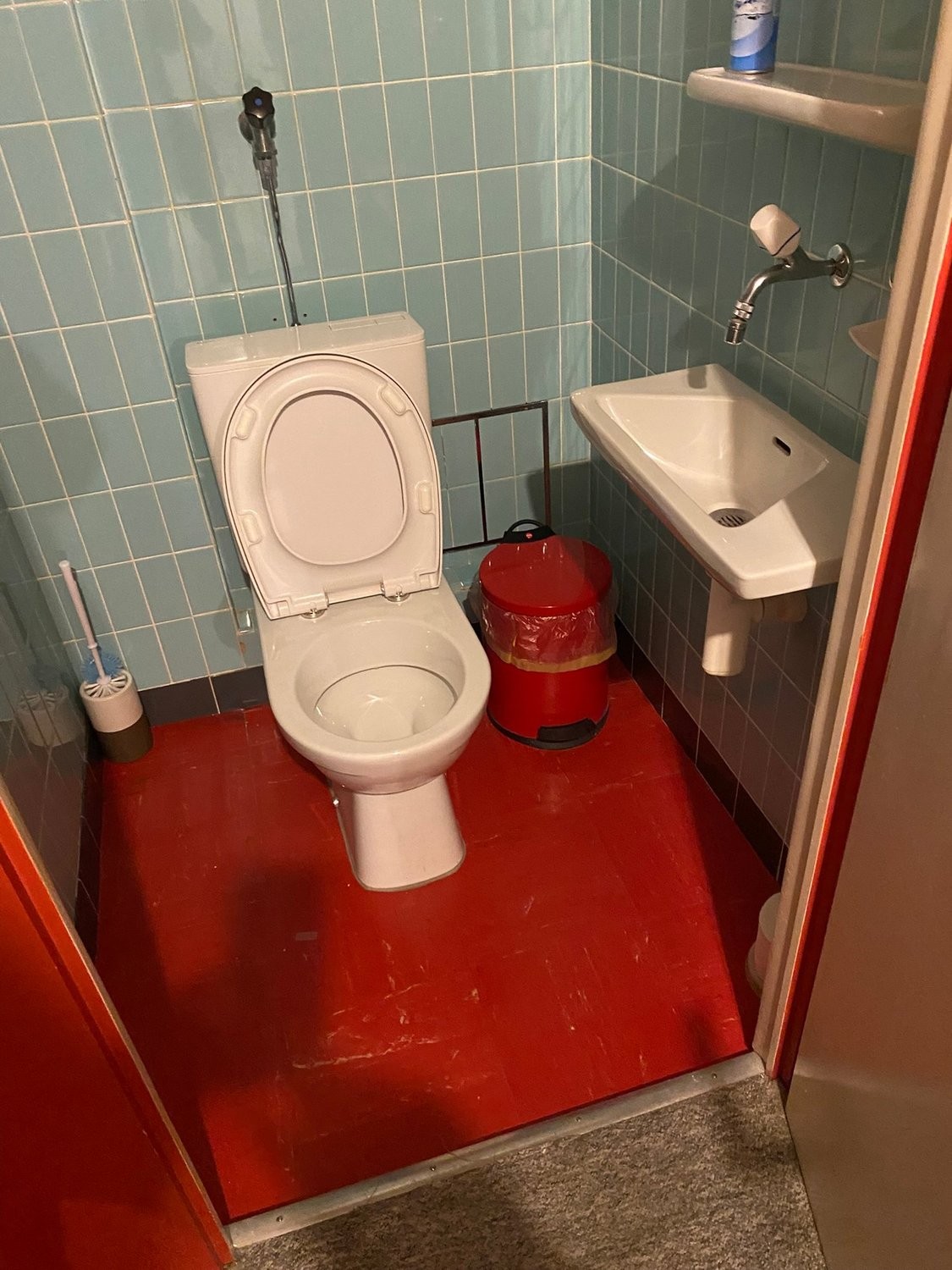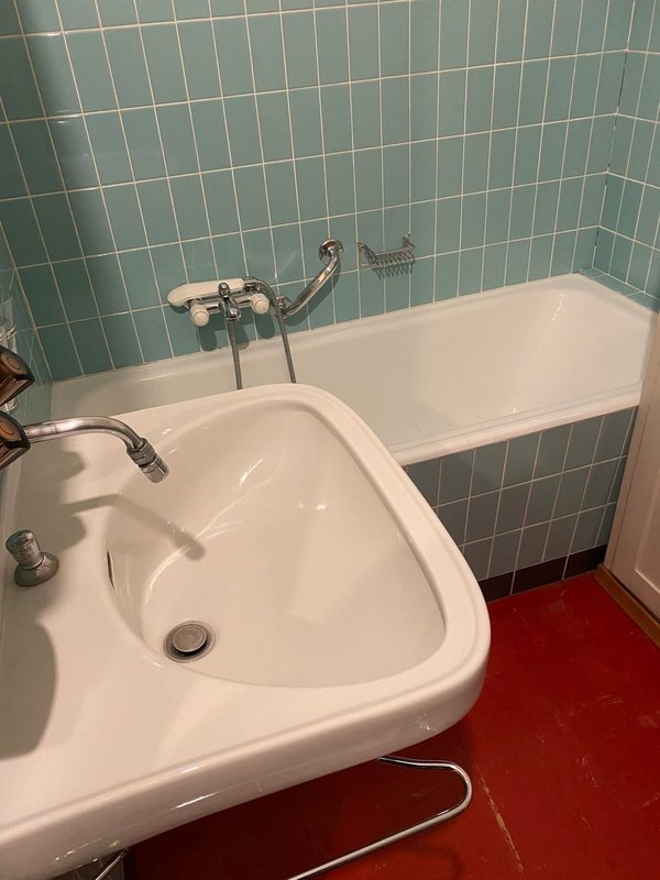 einfache Küche und Sanitäranlage